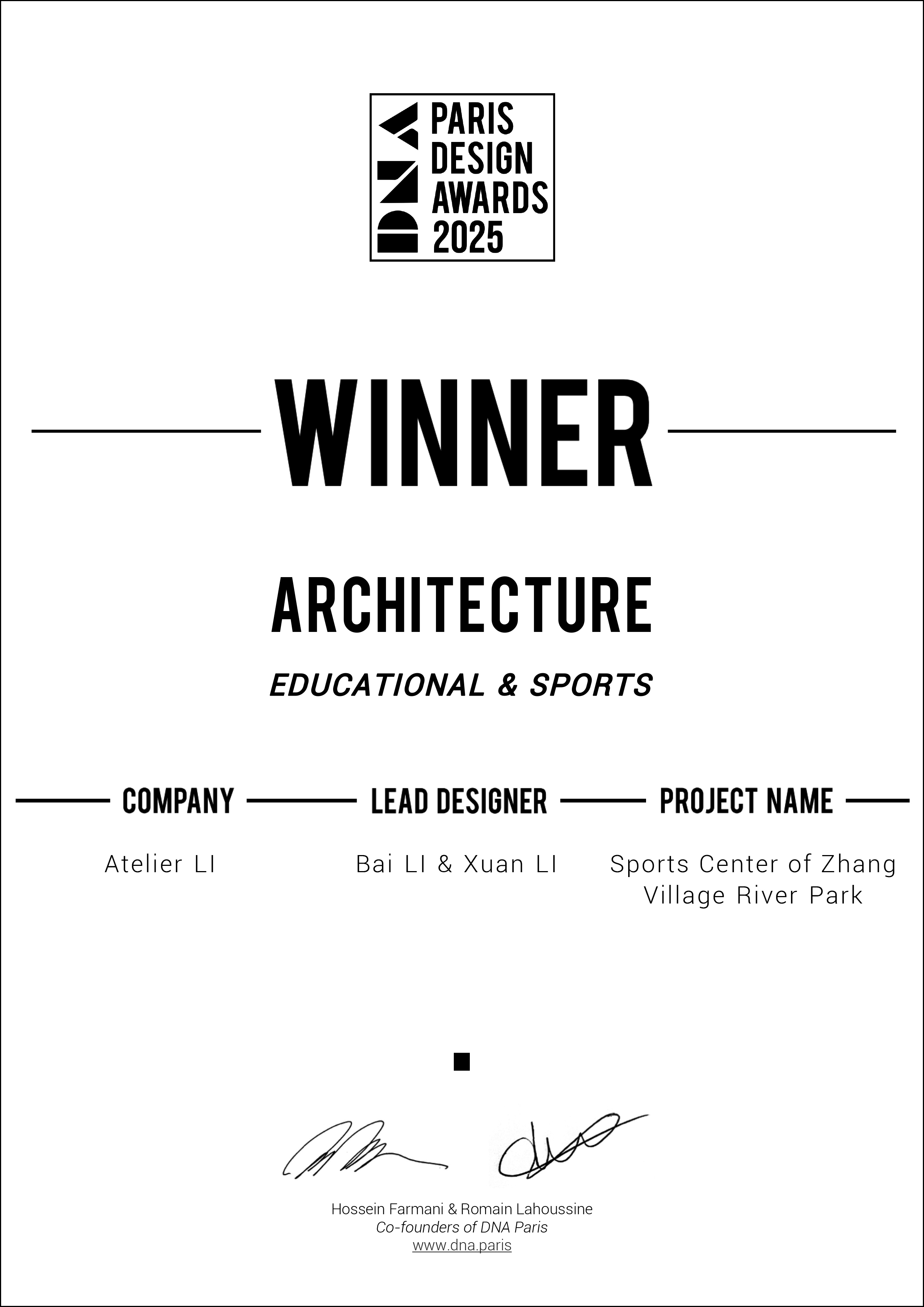 Founded in 2018, Atelier LI is an architectural office led by principals Bai LI & Xuan LI, the two founding partners completed their studies in Paris. Their design approach seamlessly integrates contemporary lifestyles with natural oriental aesthetics across architecture, interior, and landscape projects. Through a modern architectural language, they strive to craft spaces that promote comfortable, nature-inspired living while emphasizing the significance of public spaces in today’s life and society. The works by Atelier LI have been featured in various international and domestic design publications, and have garnered multiple international accolades.